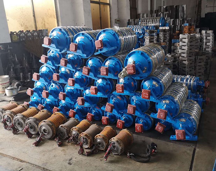 防爆電動滾筒是供各種固定式帶式輸送機、斗式提升機、卷揚機等配套的新型驅動裝置。其內部采用行星擺線減速機結構,使電機外露與滾筒直聯,具有承載能力大,過載能力強,傳動平穩,噪聲低,壽命長,使用維修方便,操作安全可靠等優點。可滿足各種逆止,包膠等要求。